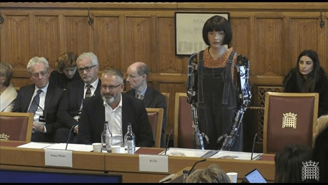 Speaking before the Communications and Digital Committee’s peers to provide testimony regarding how technology impacts the creative sectors. Ai-Da was introduced by Meller during the parliamentary session, who gave an explanation: “I thought, is it actually possible that we could critique, comment, and look at this world of technology by actually the technology speaking for itself?”